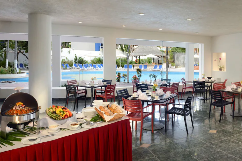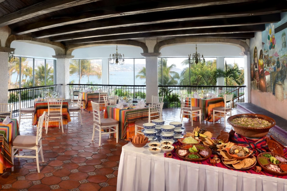 Variedad gastronómica en cuatro restaurantes y dos bares: Ofrece opciones de cocina internacional, mexicana y gourmet, además de bares con música en vivo y ambiente frente al mar.