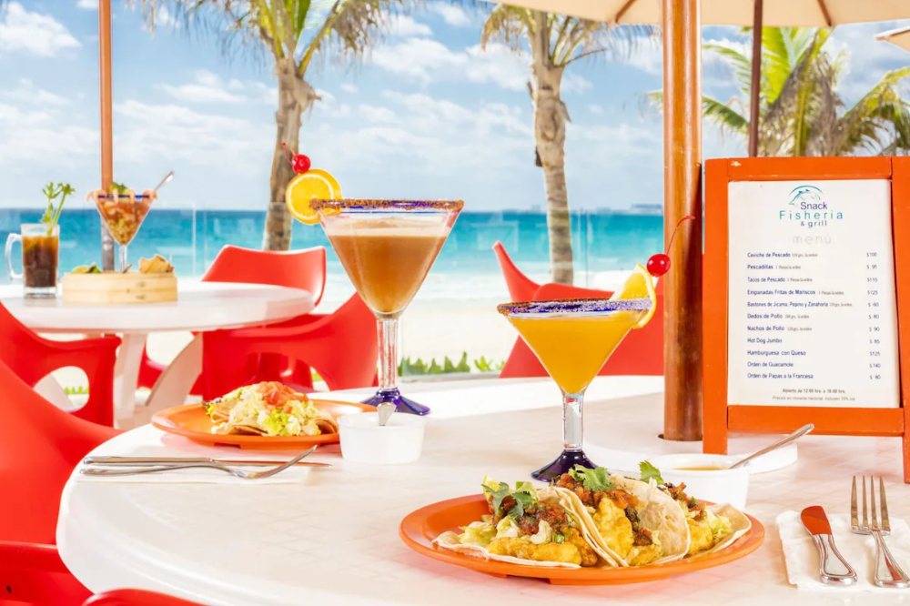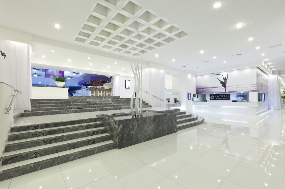 Incluye todos los alimentos y botanas, comprende desayuno buffet, comida buffet o a la carta y cena a la carta. Una amplia variedad en bebidas alcohólicas nacionales e internacionales del programa Krystal Cancún.