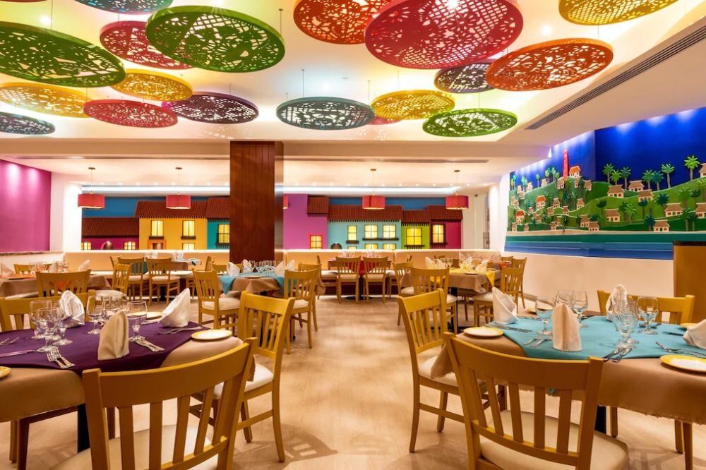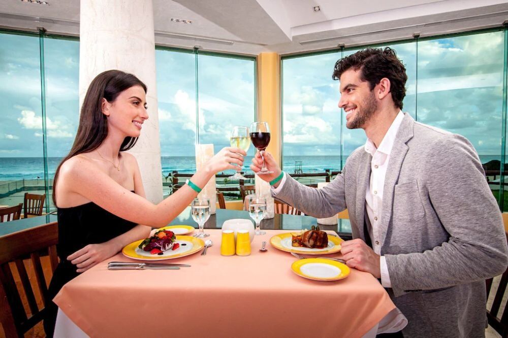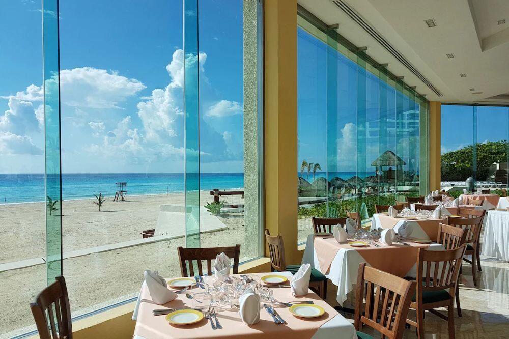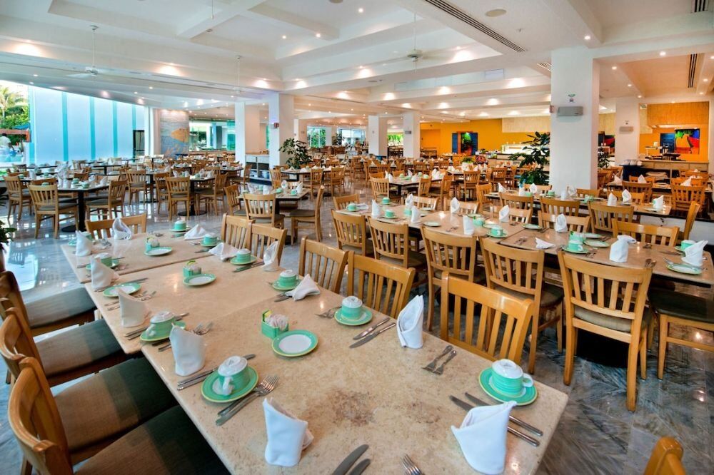 Incluye todas las comidas, bebidas y botanas en cualquiera de los dos restaurantes y tres bares. Desayuno bufet de 07:00 a 11:00 hrs., comida bufet de 12:30 a 15:30 hrs. y cena bufet o a la carta de 18:30 a 23:00 hrs. Las botanas están disponibles de 10:30 a 18:30 hrs.