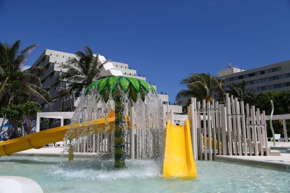 Piscinas para todos: Cuenta con una alberca principal, una piscina para niños con área de juegos acuáticos y una piscina exclusiva para adultos con servicio de bar.