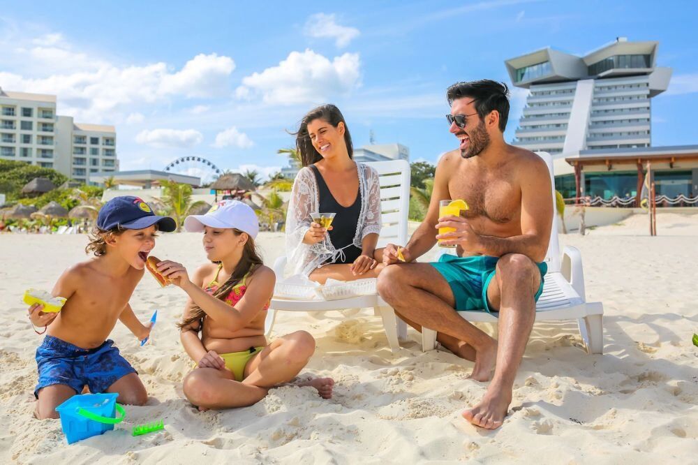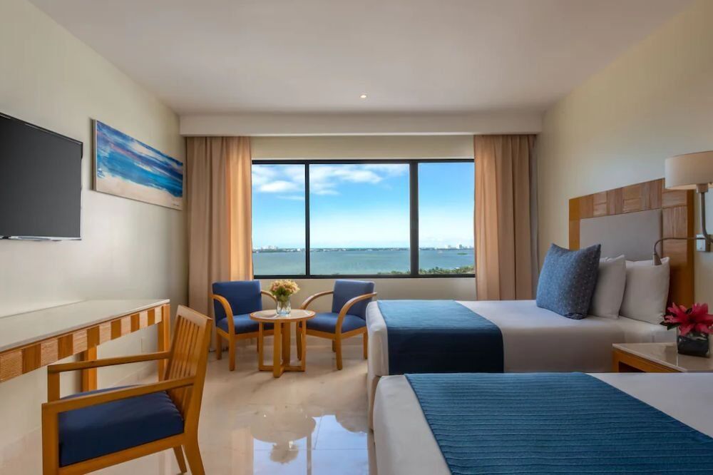 2 albercas, WiFi en áreas comunes, Estacionamiento, Playa, Gimnasio, Concierge, Recepción 24 horas, Aire acondicionado, Caja de seguridad, Limpieza diaria, Club infantil, Animación diaria, Espectáculos nocturnos, Piscina infantil, Camastros, Kayak, Snorkel, Voleibol playa, Clases de spinning, Aeróbicos acuáticos